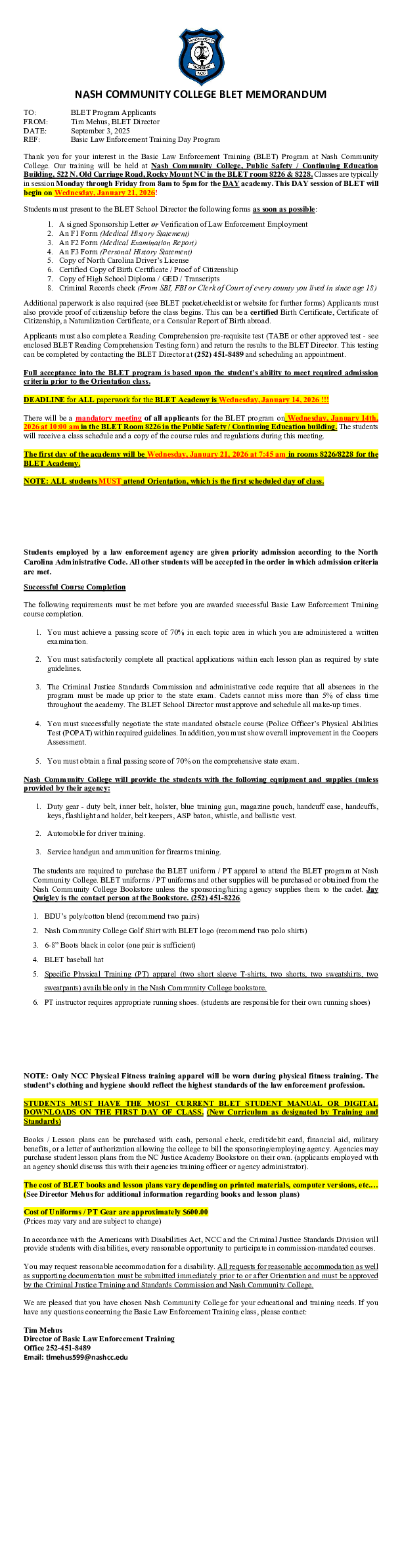 BLET Memorandum